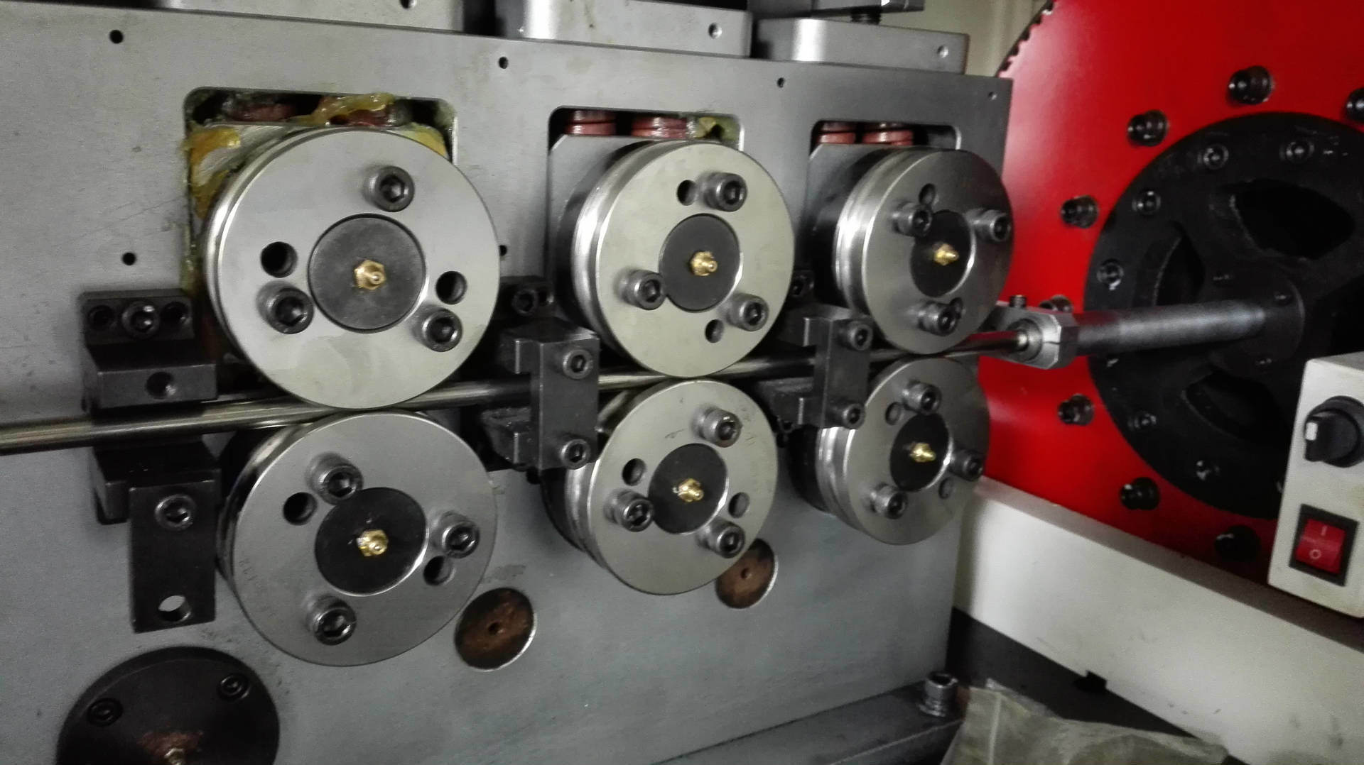 三組送線輪,11.5KW的伺服送線,送線力度足夠完成13毫米以上線經(jīng)的傳送。
