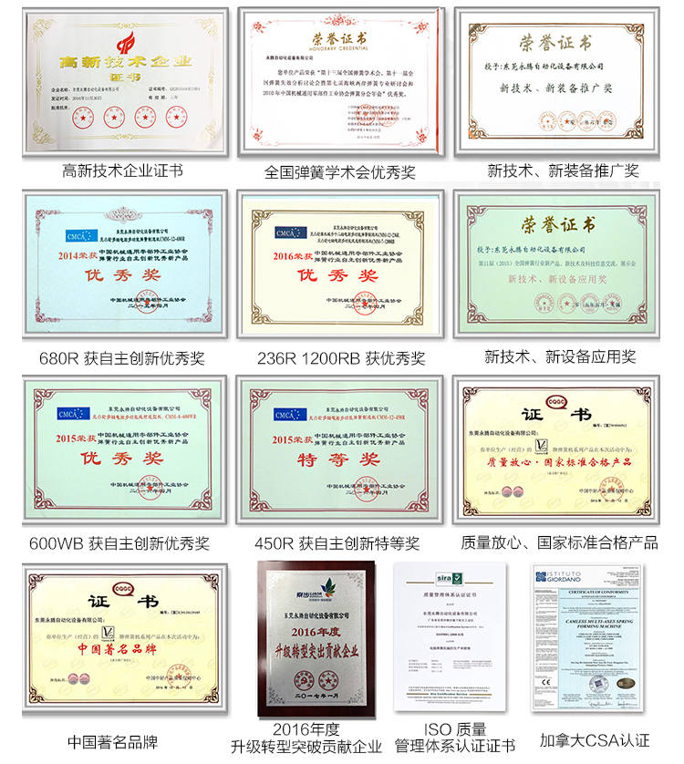 資質(zhì)證書永騰彈簧機(jī)系列機(jī)型現(xiàn)已獲國內(nèi)外專利局多項(xiàng)實(shí)用型專利。