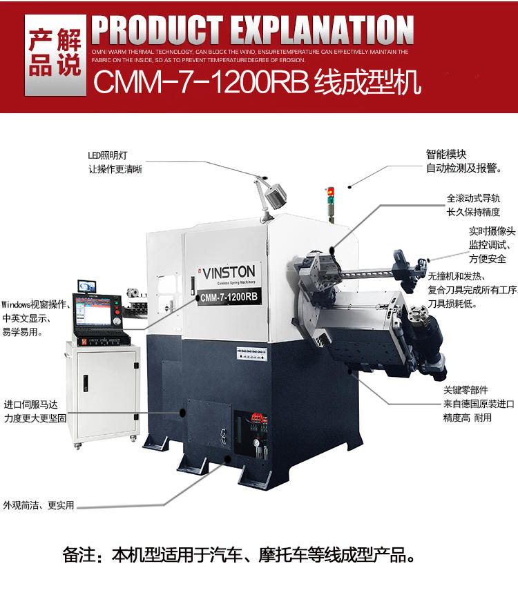 7、適用于汽車、摩托車、飛機、娛樂健身器材、工業(yè)設(shè)備等大線徑線材成形產(chǎn)品。