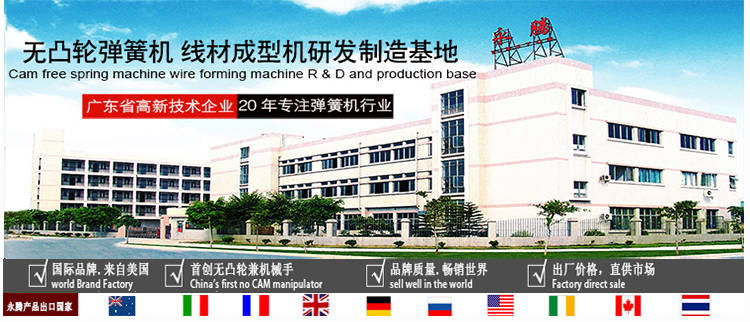 東莞永騰自動化設備有限公司是一家專業(yè)生產(chǎn)CNC多軸多功能無凸輪電腦彈簧機、線材成型機的美國獨資企業(yè)。本公司從2001年開始運用美國先進的伺服控制技術(shù)進行一次具有重要意義的技術(shù)改革,打破傳統(tǒng)的凸輪帶動成型模式,成為行業(yè)創(chuàng)新的無凸輪模式兼?zhèn)錂C械手的彈簧機。可加工線徑0.15-12mm范圍彈簧及線材成型。