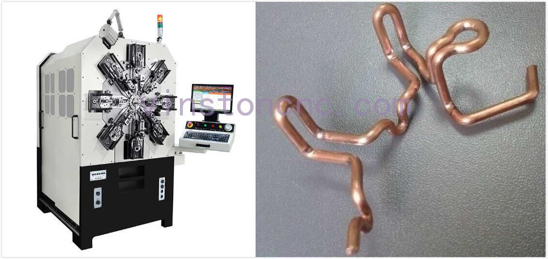CMM-12-236R 做小的線成型:如電器、工藝品、燈飾、異形線成型,經(jīng)常有機(jī)型、電子、玩具、金屬工藝品配件的廠家找到我們,解決他們生產(chǎn)線成型人工做、功效不高、配件穩(wěn)定性不好等問(wèn)題,所以,用途遠(yuǎn)遠(yuǎn)不只是彈簧廠這樣的行業(yè)。如圖為浙江一家大型汽車電器廠家用永騰236R生產(chǎn)的電器零部件: